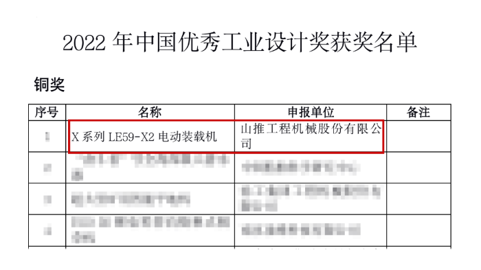 近日,工業(yè)和信息化部公布2022年中國優(yōu)秀工業(yè)設(shè)計獎獲獎名單,山推自主研發(fā)的X系列LE59-X2純電裝載機經(jīng)過層層選拔脫穎而出,獲評“中國優(yōu)秀工業(yè)設(shè)計獎”銅獎,充分彰顯了山推研發(fā)、設(shè)計創(chuàng)新實力。