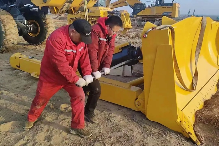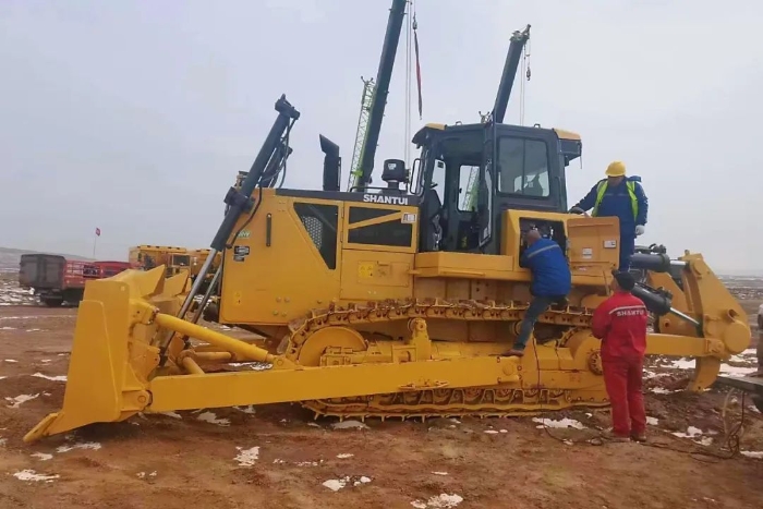 客戶滿意是我們的宗旨。每一臺交到客戶手里的新機,山推服務人都提起了十二分的精神。交新機的也是一個新作品的誕生,不允許出一點差錯。因為每一位山推人,都深知研發(fā)創(chuàng)新的認真,也了解生產環(huán)節(jié)的努力,所以在交機的環(huán)節(jié),決不能絲毫懈怠。為了做好SD32-G的交機服務,駐新疆片區(qū)的山推服務團隊一接到客戶的交機需求,邊根據(jù)礦區(qū)客戶的要求,在當?shù)貢r間凌晨六點就開始進行設備各個部位的組裝工作。
