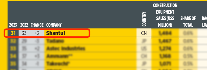 近日,2023全球工程機械制造商50強排行榜(Yellow Table 2023)公布,山推再度上榜,位列第31位,較去年名次上升2位,成為唯一一家排名上升的中國工程機械品牌!