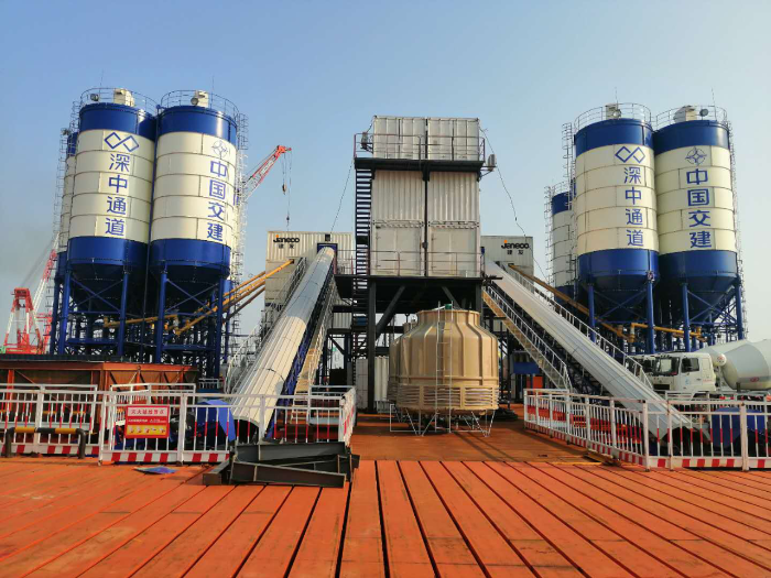 針對海上橋隧建設(shè)場景,山推專門研發(fā)的海上平臺混凝土攪拌站成為項目混凝土生產(chǎn)的必備利器。早在2018年,山推多套E3R-090、E3R-120、E3R-180海上平臺混凝土攪拌站先后參與到深中通道建設(shè)之中,為深中通道橋梁建設(shè)提供優(yōu)質(zhì)的混凝土。