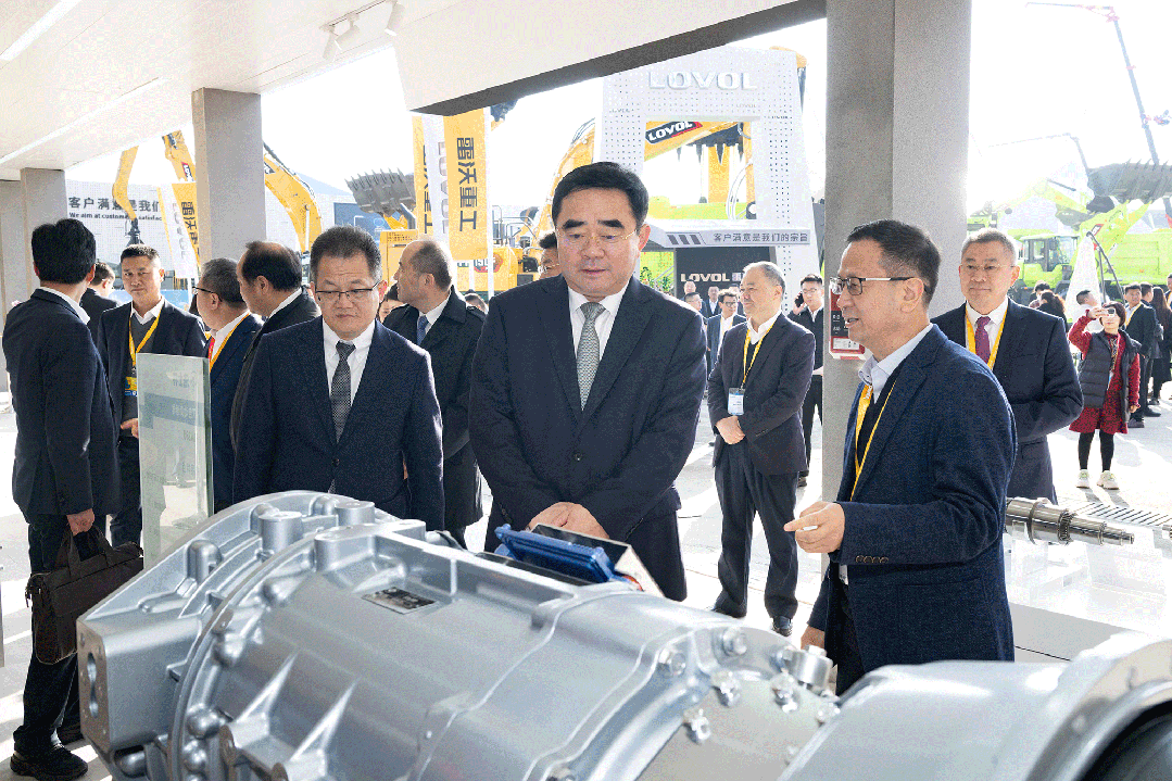 11月26日,全球工程機(jī)械行業(yè)盛會(huì)——2024上海寶馬展(bauma CHINA 2024)在上海新國際博覽中心盛大開幕。山東重工旗下兩大工程機(jī)械品牌山推、雷沃重工以及動(dòng)力系統(tǒng)全球領(lǐng)導(dǎo)者濰柴組團(tuán)亮相,集中展示了領(lǐng)先的工程機(jī)械一體化施工解決方案和全球獨(dú)一無二的動(dòng)力系統(tǒng)“黃金內(nèi)核”,系列新產(chǎn)品、新技術(shù)重磅首秀,彰顯了山東重工在工程機(jī)械高端、智能、綠色發(fā)展方面的硬核實(shí)力。山東重工集團(tuán)黨委書記、董事長滿慎剛帶隊(duì)巡展,并參加新品發(fā)布會(huì)。集團(tuán)黨委委員、副總經(jīng)理馬常海,副總經(jīng)理劉會(huì)勝以及國內(nèi)外合作伙伴、客戶代表參加活動(dòng)。