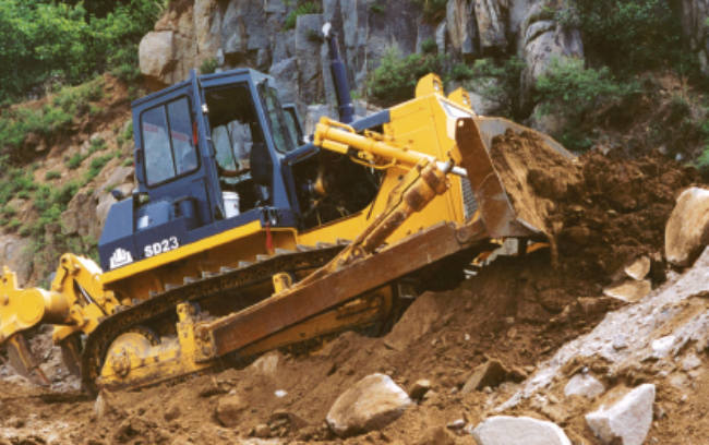 SD23推土機(jī)某山壩征戰(zhàn)作業(yè)。SD23推土機(jī)采用山推自制傳動(dòng)系統(tǒng)和底盤系統(tǒng),配置重發(fā)/濰柴發(fā)動(dòng)機(jī),爬坡能力可達(dá)30°。由于超高的出勤率,超低的維護(hù)成本,贏得用戶充分認(rèn)可。