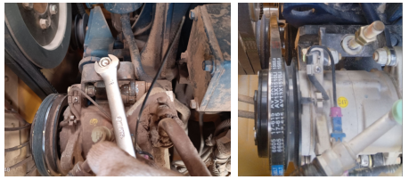 答:壓縮機(jī)皮帶打滑導(dǎo)致的吱吱響,一般是因?yàn)槠q緊不足引起的,可以通過(guò)調(diào)整皮帶漲緊度解決。如有必要對(duì)打滑嚴(yán)重的皮帶進(jìn)行更換。(務(wù)必發(fā)動(dòng)機(jī)熄火后進(jìn)行此操作)